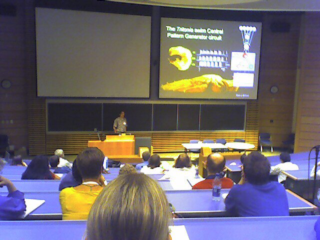 One of the great strengths of Neuroethology is the ability to derive evolutionary concepts from the study of the neural control of behavior in different species. This symposium on the " Evolution of brains and behavior" covered examples spanning molluscs, voles, moles and primates.Organizer Paul Katz kicked the symposium of with his great study on swimming snails. Tritonia swim by flexing dorso-ventrally and Melibe swim laterally like fish (see videos). Similar to many other gastropod systems, serotonin has a strong modulatory effect on the properties and synaptic strenghts within the swimming CPG of Tritonia. This intrinsic neuromodulation by serotonin is state-dependent. Both behaviors are controlled by the same homologous neurons. Do these homologous swim-interneurons perform the same functions in animals that swim by flexing the body differently? It turns out that the CPG organization is fundamentally different, in that electrical coupling and synaptic inhibition are exactly turned by 90° between both species, meaning that dorsoventral swimmers synchronize their lateral sides, whereas lateral swimmers synchronize their dorsoventral sides with electrical coupling. Serotonergic modulation of the CPGs is also different in both species.